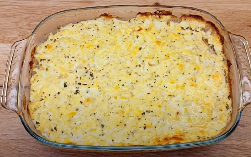 Разогрейте духовку до 180°C и отправьте своё творение запекаться на 40 минут. Блюдо будет готово, когда поверхность станет золотистой и аппетитной.
