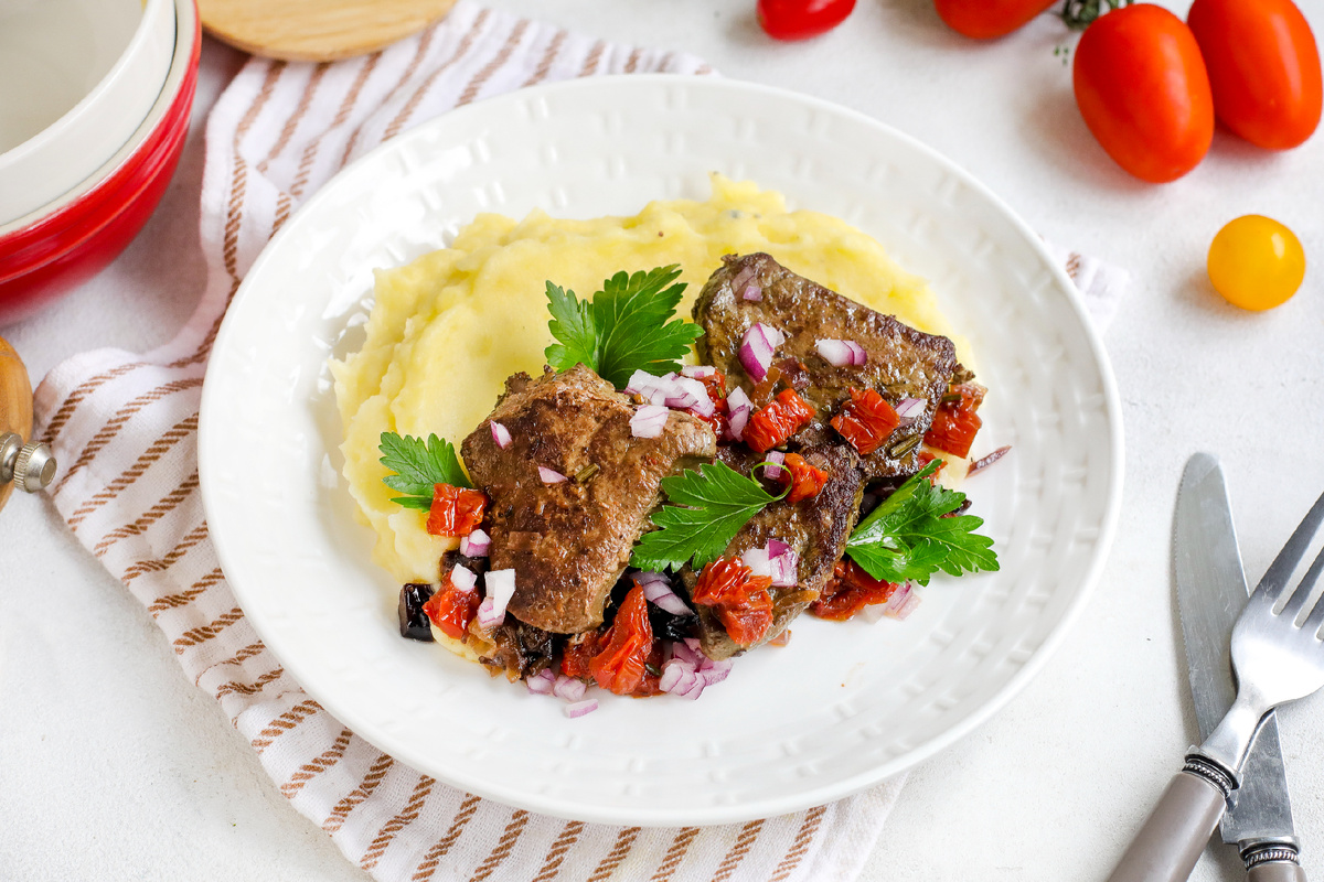 Говяжья печень по-милански — это не только классическое блюдо, но и настоящая находка для любителей необычных вкусов. Сочетание чернослива и вяленых томатов придаёт печени яркость и характер, а картофельное пюре служит идеальным гарниром, который уравновешивает всю гастрономическую палитру этого блюда, сообщает Кулинарный блог «Ужин Дома».