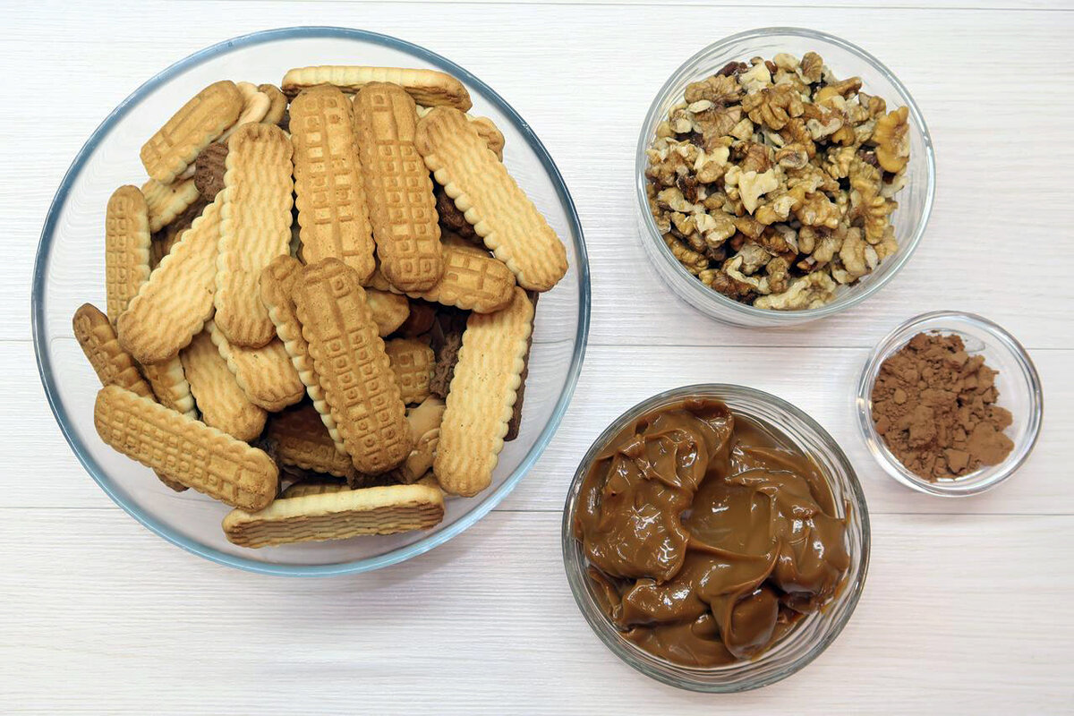 Вкусный и быстрый десерт без выпечки — это идеальное решение для тех, кто не хочет тратить много времени на кулинарию, но все равно желает порадовать себя и близких сладким лакомством. Торт из печенья с хрустящей текстурой, нежной карамельной начинкой и ароматными орехами — это настоящая находка для занятых людей!
