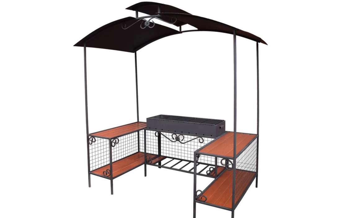 Мангал-беседка — это незаменимый элемент для организации уютной кухни на приусадебном участке. Эта стационарная, цельносварная конструкция оснащена съемной жаровней, которая позволяет установить до 10 шампуров и быстро накормить друзей и семью. Широкая скатная крыша держит вас в безопасности от дождя и палящего солнца, а отверстия для отвода дыма обеспечивают комфортное приготовление.