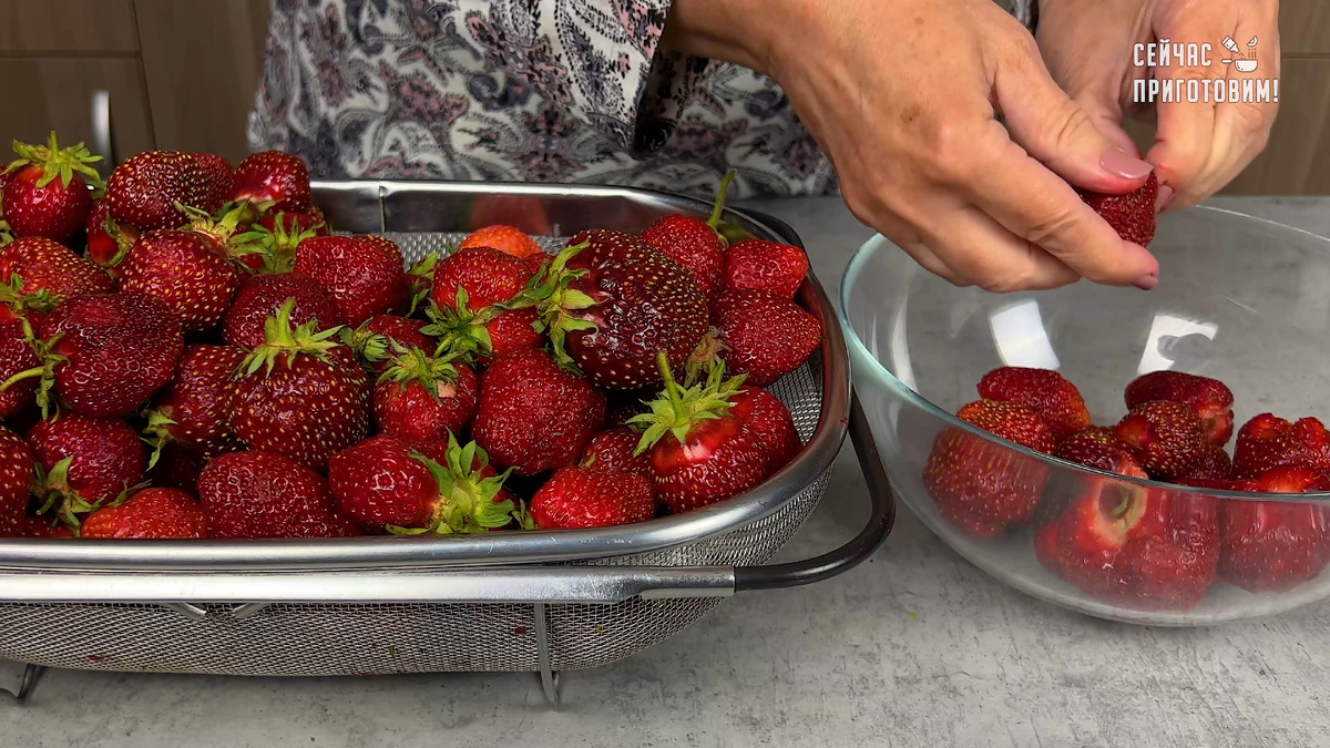 Перед переработкой клубнику тщательно промывают под проточной водой и сушат на полотенце. Затем аккуратно удаляют плодоножки, чтобы ягоды сохранили свою форму и не впитывали лишнюю влагу.