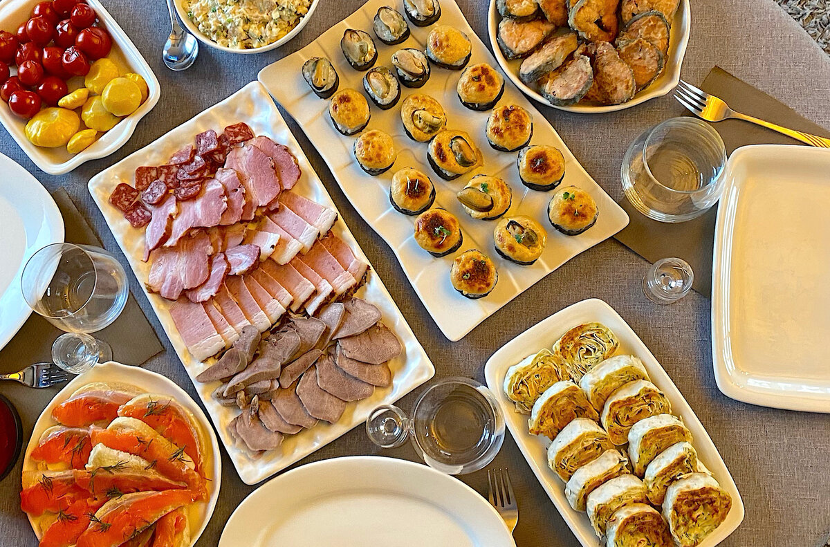 Несмотря на то что в этот торжественный вечер нас собралось всего трое, накрыть стол не составило труда. Вкусняшки были как знакомыми, так и несколько новыми, которые были с удовольствием добавлены в меню.