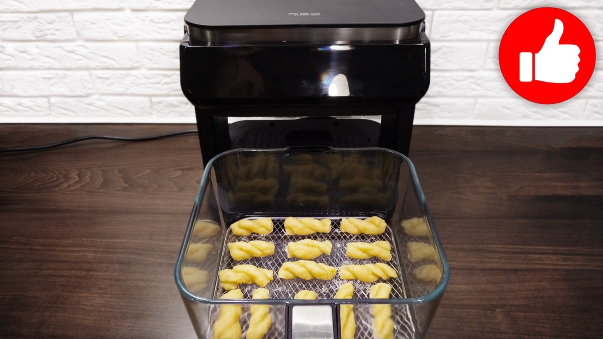 6. Снизу окунуть печенье в муку и аккуратно выложить на нижнюю решетку аэрогриля.