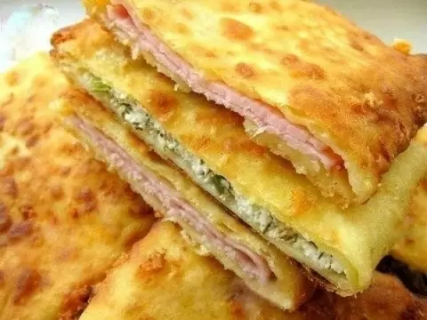 - 1 стакан натертой ветчины или сосисок (либо творога с зеленью)