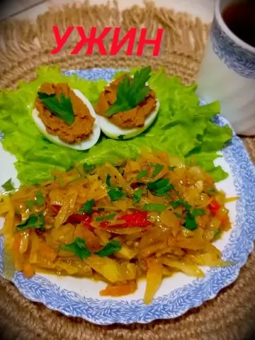 При подаче этого овощного рагу на тарелке был использован свежий лист салата в качестве подложки. Для завершения этого кулинарного шедевра к блюду добавили вареное яйцо, на которое был аккуратно намазан домашний печеночный паштет. Чтобы вечер стал поистине уютным, был заварен свежий чай с легкими нотками бергамота — идеальное завершение насыщенного дня.