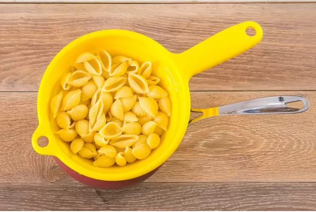 Шаг 1: В кастрюле с кипящей подсоленной водой отварите макароны-ракушки на протяжении 15 минут. После этого откиньте их на дуршлаг и сбрызните растительным маслом.