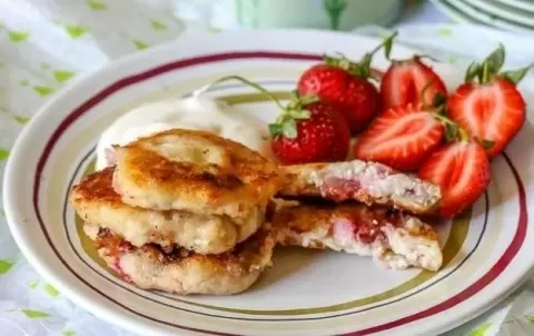Готовые сырники с клубникой лучше всего подавать с нежной сметаной, что станет отличным дополнением к вашему утреннему чаю или кофе. Этот десерт станет настоящей изюминкой любого летнего завтрака!