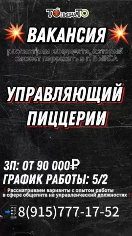 В поисках перспективной работы? То-То Пицца открывает свои двери для талантливых и амбициозных профессионалов! Данная пиццерия, известная своим уникальным подходом к качеству и сервису, объявила набор управляющего, который готов возглавить команду и вывести бизнес на новый уровень.
