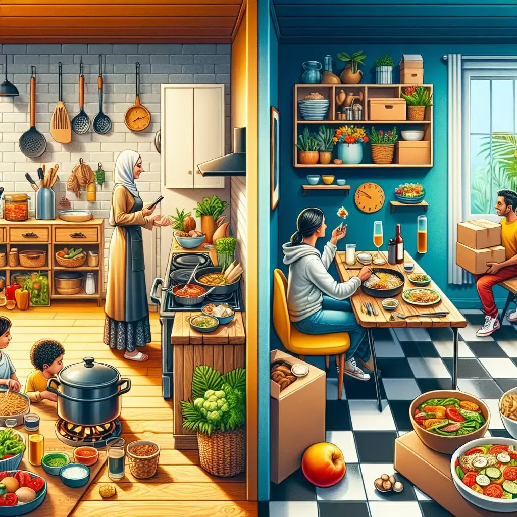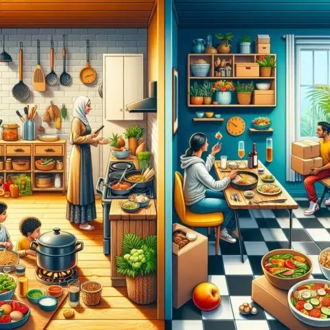 Как вы относитесь к этому выбору? Готовите ли вы сами или чаще выбираете услуги доставки? Какие у вас любимые блюда для приготовления или, наоборот, для заказа? Ведь еда может быть не только топливом, но и частью семейной истории!