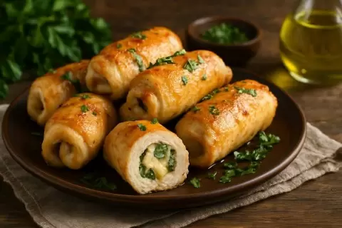 Куриные рулетики — это уникальное сочетание простоты и впечатляющего визуального эффекта. Из привычного куриного филе они превращаются в аккуратные завитки с аппетитной начинкой. Сыр добавляет сочность и нежность, а зелень освежает и придает блюду яркий вкус. Эти рулетики отлично подойдут как для обычного семейного ужина, так и для особого случая, ведь они всегда выглядят презентабельно.