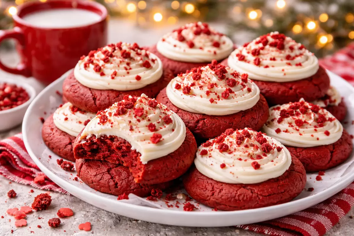 Этот десерт представляет собой сочетание классического печенья с какао и знаменитого торта «Красный бархат». Конечный результат - мягкое и слегка влажное печенье с характерными трещинками на поверхности. Небольшое количество какао в рецепте обеспечивает нежный вкус, который станет приятным сюрпризом для поклонников легких угощений.