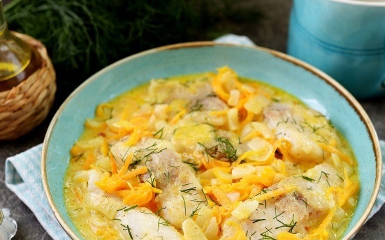 Готовое блюдо посыпьте свежим укропом и выключите плиту. Рыба под белым маринадом великолепно сочетается с вареным рисом или картофелем, что делает ее отличным гарниром для семейного ужина.