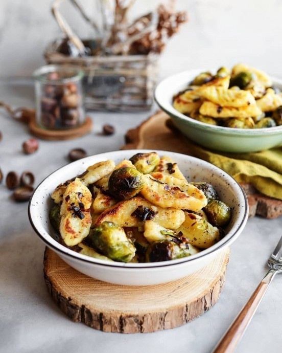 После этого обжарьте их на оливковом масле, добавив, к примеру, брюссельскую капусту для яркости и вкуса.