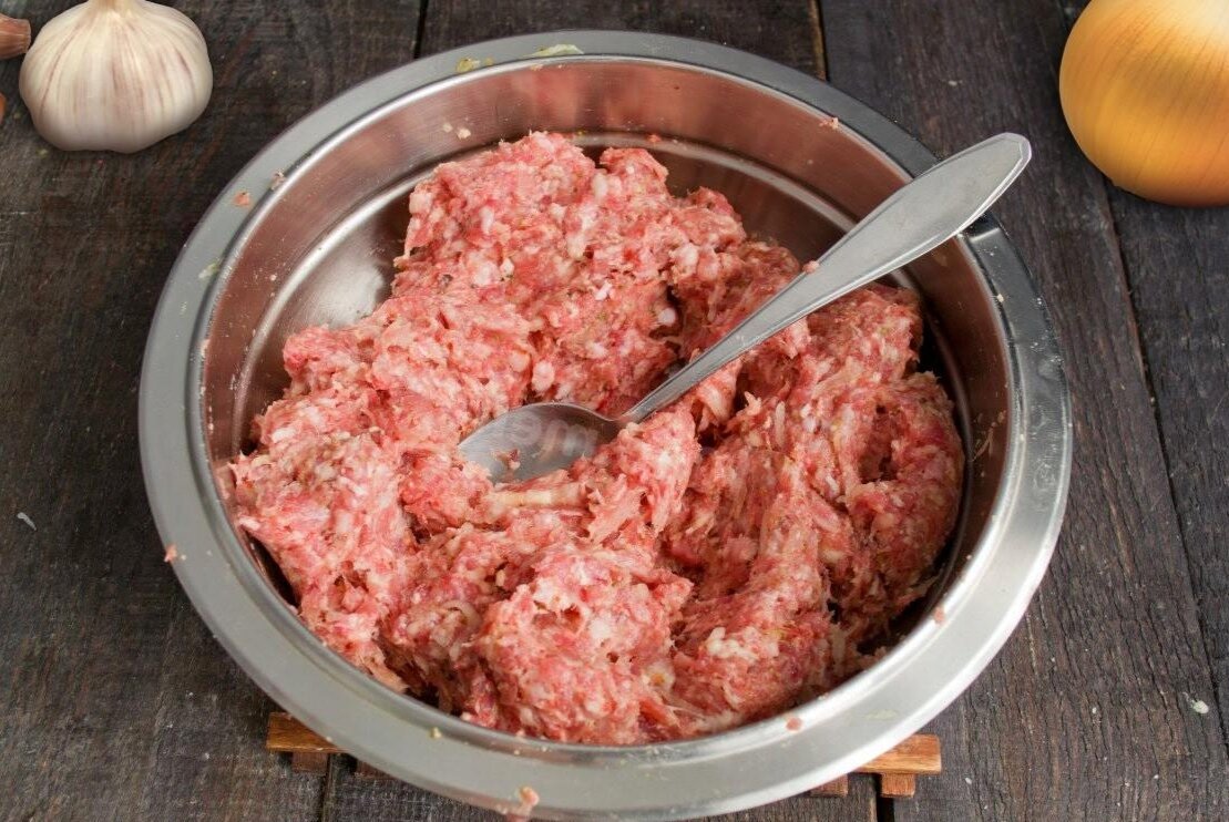 Для начала необходимо тщательно измельчить лук — это можно сделать с помощью блендера. Часть лука добавляют непосредственно в фарш, а чем больше лука, тем сочнее получится результат. Не забудьте посолить и поперчить по вкусу!