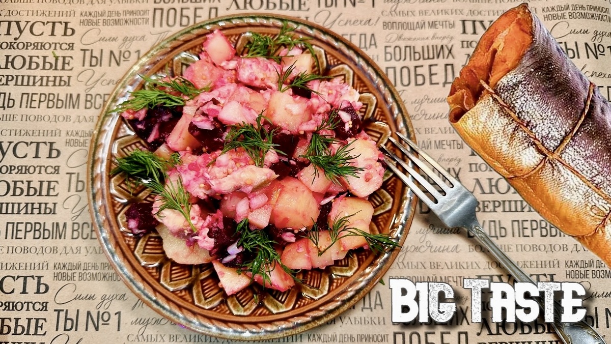 Этот оригинальный винегрет, придуманный одной кулинарной энтузиасткой из Калининграда, удивляет сочетанием ингредиентов. Копчёная рыба придаёт блюду уникальный вкус, который не оставит равнодушным ни одного гурмана.