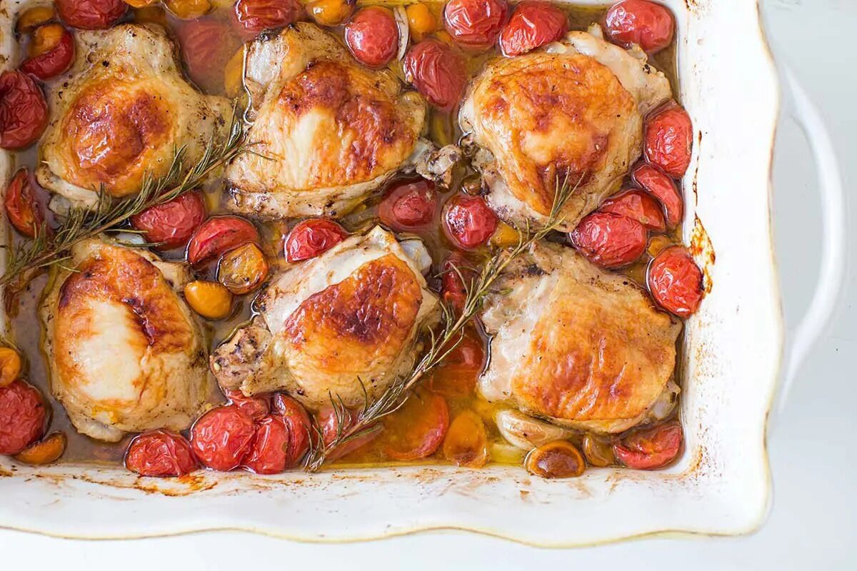 Приготовление курицы в духовке стало еще проще благодаря этому быстрому и легкому рецепту, который идеально подойдет для вечернего семейного ужина. Куриные бедрышки, запеченные с яркими помидорами черри, ароматным чесноком и свежим розмарином, удивят каждого своим вкусом.