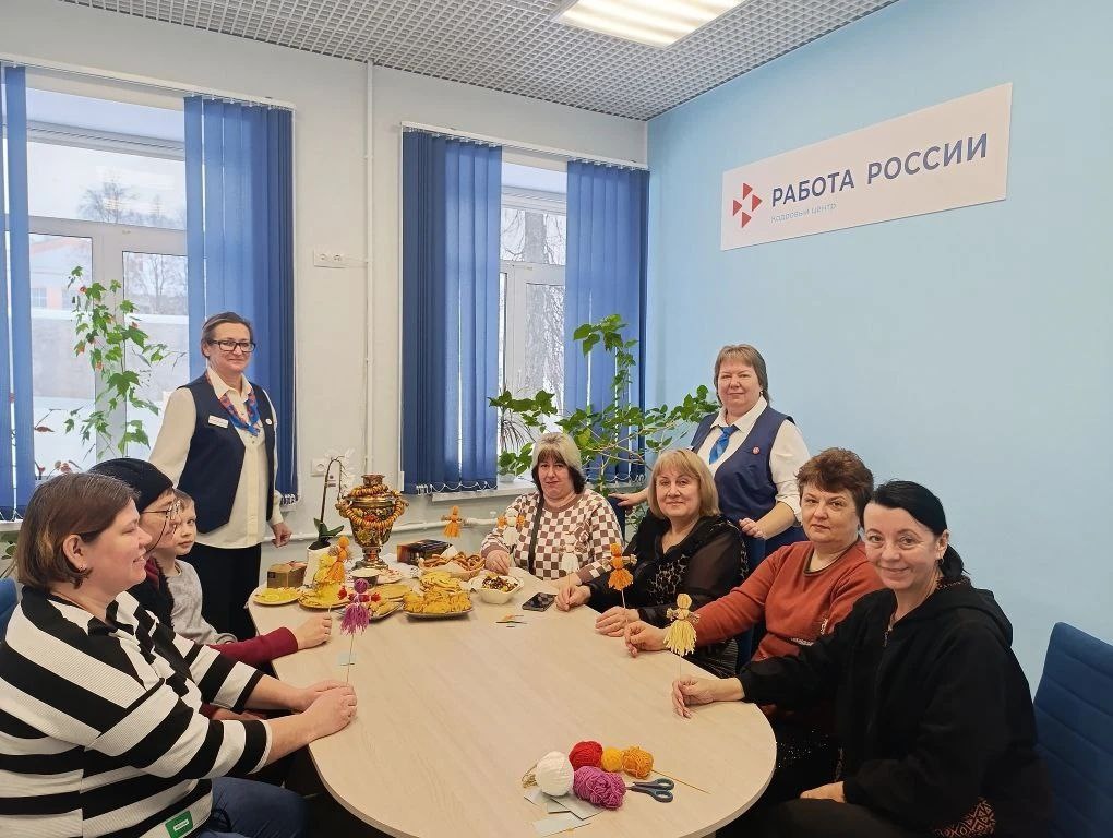 Праздник начался в клубе «Путь к успеху», где сотрудники службы занятости поздравили женщин и рассказали о программе бесплатного обучения в рамках нацпроекта «Кадры». В непринужденной обстановке, за чашкой чая, участницы поделились своими семейными традициями, обменялись вкуснейшими рецептами блинов и даже стали мастерами кукольных оберегов под руководством Натальи Завальд.