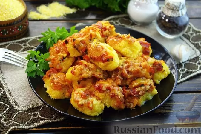- Кукурузные ньокки в томатном соусе – настоящее итальянское лакомство, приготовленное из кукурузной муки. Эти маленькие клёцки покрыты нежным томатным соусом с добавлением лука и базилика, затем запекаются до золотистой корочки с сыром.
