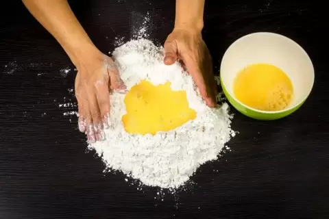 Приготовление тоннарелли требует определенных навыков, но это не значит, что его невозможно сделать. Процесс начинается с отделения желтков от белков — белки можно оставить для десертов. Желтки взбиваются с солью, после чего добавляется мука. Тесто замешивается и убирается в холодильник на 30 минут, чтобы оно отдохнуло.