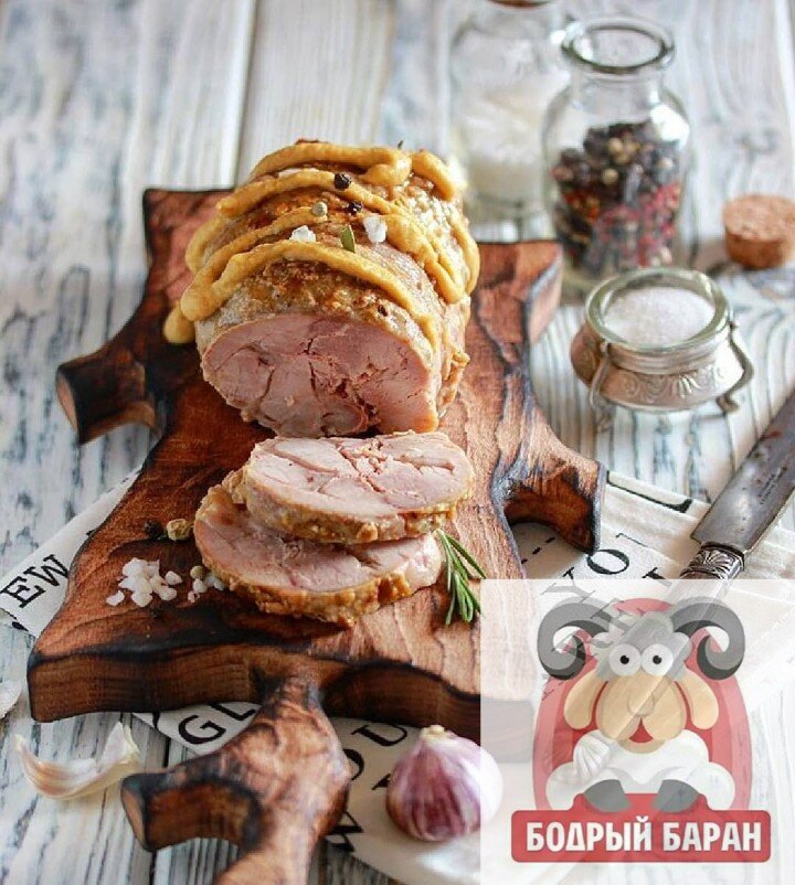 Выпекать буженину необходимо в заранее разогретой до 180 градусов духовке на протяжении 1,5-2 часов. После завершения времени выпечки, дать мясу немного остыть, чтобы легче было нарезать.