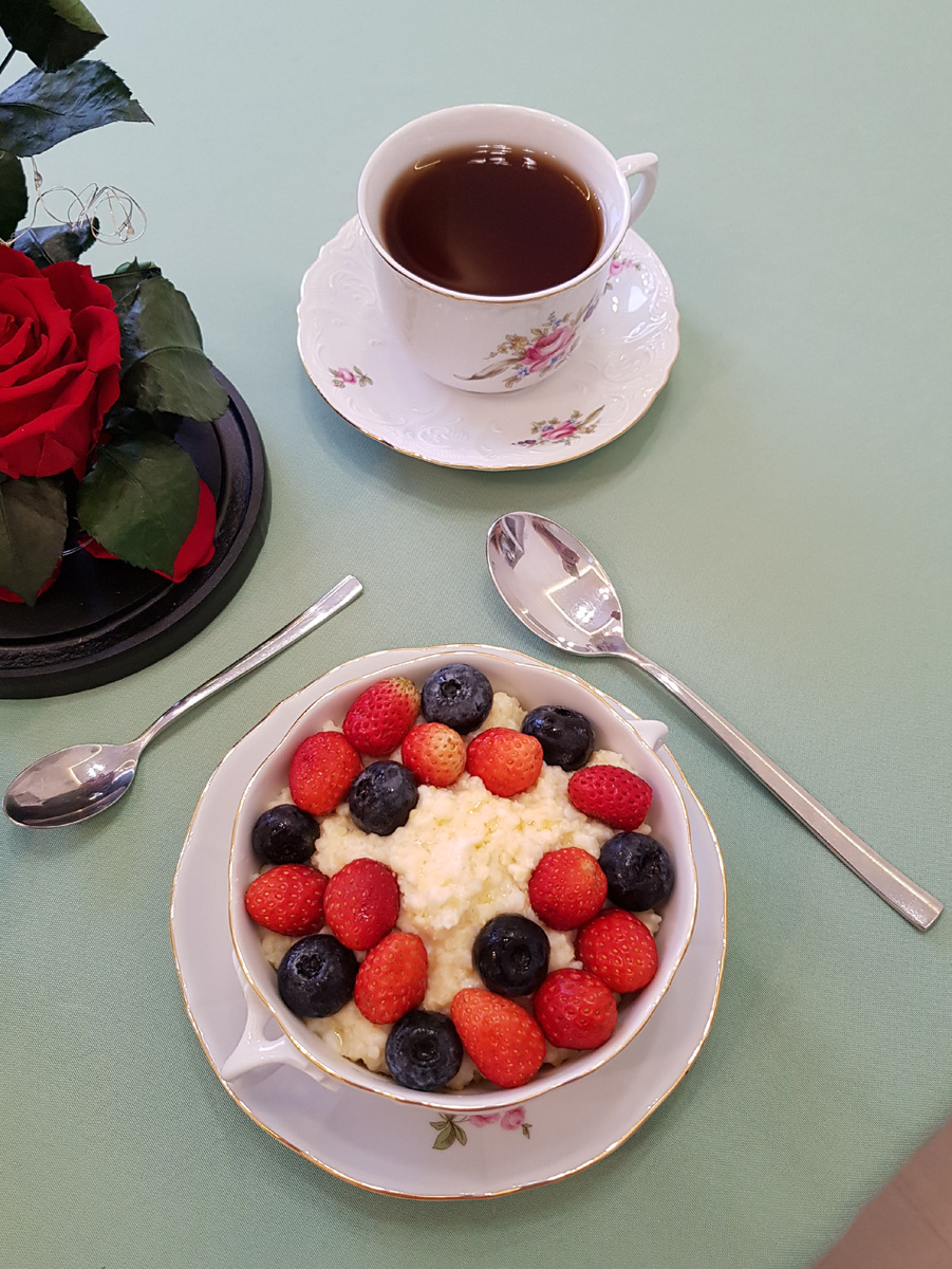Разложить кашу по тарелкам и украсить свежими ягодами клубники и голубики. Такой подход не только украсит блюдо, но и придаст ему яркий вкус и аромат. Приятного аппетита всем любителям домашней кухни!